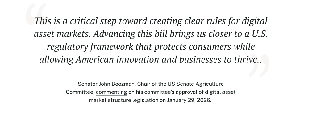 The January 27-28 FOMC decision and guidance will provide near-term direction. While the majority of the market is anticipating no rate change at the March FOMC, any dovish signals could benefit risk assets broadly. With the Greenland tariff "framework" still undefined, markets remain vulnerable to policy reversals. The administration's crypto-friendly stance—including digital asset market structure legislation working its way through Congress—offers potential positive catalysts.